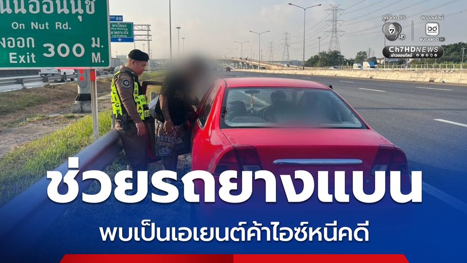 ตำรวจทางหลวงหวังดี เข้าช่วยรถยางแบนจอดเสียข้างไหล่ทาง แจ็กพอต ! พบว่า “รส บางเสาธง” เป็นเอเยนต์ค้าไอซ์หนีคดี นั่งมาในรถด้วย