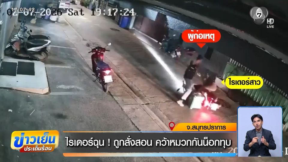 ข่าวเย็นประเด็นร้อน - หนุ่มไรเดอร์ฉุนหนัก เจอไรเดอร์สาวสั่งสอนหลังขี่ปาดหน้า จอดรถคว้าหมวกกันน็อกไล่ทุบใส่จนเจ็บหนัก งานนี้พลเมืองดีที่อยู่ในเหตุการณ์บอกทนไม่ไหว จัดชุดใหญ่ให้ทันที