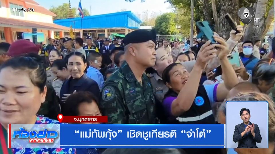 ห้องข่าวภาคเที่ยง - ไปที่มุกดาหาร เมื่อวานนี้มีพิธีเปิด อนุสาวรีย์และหอเกียรติยศ พลตรี ธวัชชัย บุสภา หรือจ่าโต๋ ทหารกล้าผู้เสียสละในการปะทะตามแนวชายแดนไทย-กัมพูชา ซึ่งพลเอกบุญสิน พาดกลาง ก็ไปเป็นประธานพร้อมกล่าวสดุดี