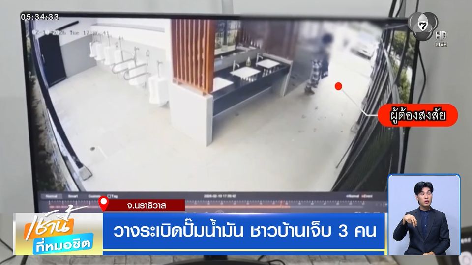 เช้านี้ที่หมอชิต - ป่วนรายวัน คนร้ายลักลอบวางระเบิดภายในปั๊มน้ำมัน จังหวัดนราธิวาส แรงระเบิดทำให้ชาวบ้าน บาดเจ็บเล็กน้อย 3 คน
