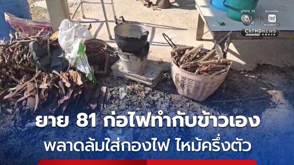 ยายวัย 81 ปี ล้มใส่กองไฟ ลูกชายป่วยติดเตียงเห็นเหตุการณ์เคาะสังกะสี เรียกเพื่อนบ้านช่วย ด้านญาติเผย มีลูกสะใภ้เป็นคนทำอาหารมาส่งทุกวัน แต่เช้านี้ยายหิวข้าวรอไม่ไหว ทำกับข้าวกินเอง