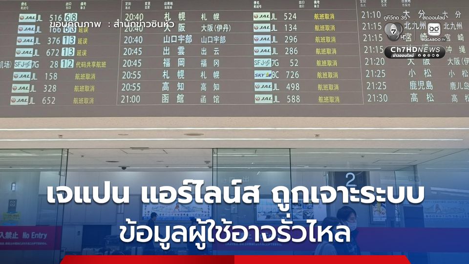 (11 ก.พ.69) สำนักข่าวซินหัว รายงานว่า สายการบินเจแปน แอร์ไลน์ส (JAL) เผยว่าระบบการจองบริการจัดส่งกระเป๋าสัมภาระของสายการบินฯ ถูกเข้าถึงโดยไม่ได้รับอนุญาต และข้อมูลส่วนบุคคลของผู้ใช้อาจรั่วไหลมากถึง 28,000 ราย