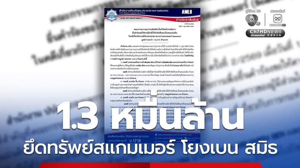 1.3 หมื่นล้าน ขบวนการสแกมเมอร์โยง “ยิมเลียก เบนสมิธ เฉินจื้อ ก๊กอาน” คณะกรรมการธรุกรรม ปปง. มีมติส่งอัยการยื่นคำร้องขอให้ศาลสั่งให้ทรัพย์สินตกเป็นของแผ่นดิน
