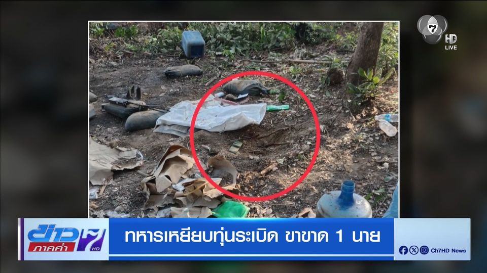 ข่าวภาคค่ำ - ทหารไทยเหยียบทุ่นระเบิด ขาขาด 1 นาย เจ้าหน้าที่นำตัวส่งโรงพยาบาลกันทรลักษณ์แล้ว