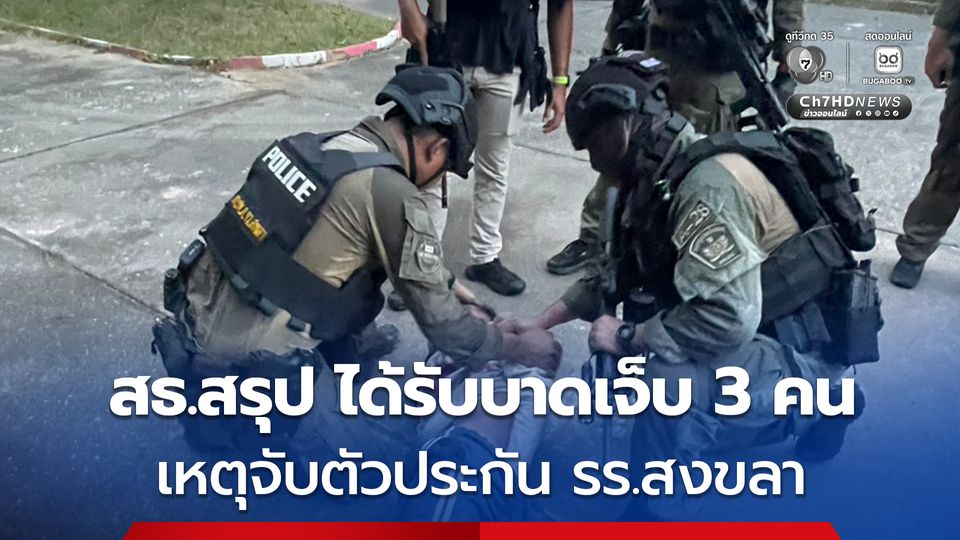 กระทรวงสาธารณสุข สรุป มีผู้ได้รับบาดเจ็บ 3 คน จากเหตุคนร้ายจับตัวประกัน ภายในโรงเรียน จ.สงขลา ขณะนี้กำลังรักษาตัว