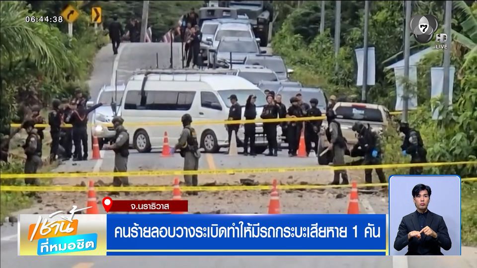 เช้านี้ที่หมอชิต - กลุ่มผู้ก่อความไม่สงบลอบวางระเบิดบนถนน ทำให้มีรถกระบะได้รับความเสียหาย 1 คัน และมีผู้ได้รับาดเจ็บ 3 คน