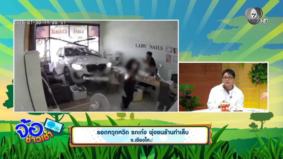 จ้อข่าวเช้า - รอดหวุดหวิด รถเก๋ง พุ่งชนร้านทำเล็บ จ.เชียงใหม่