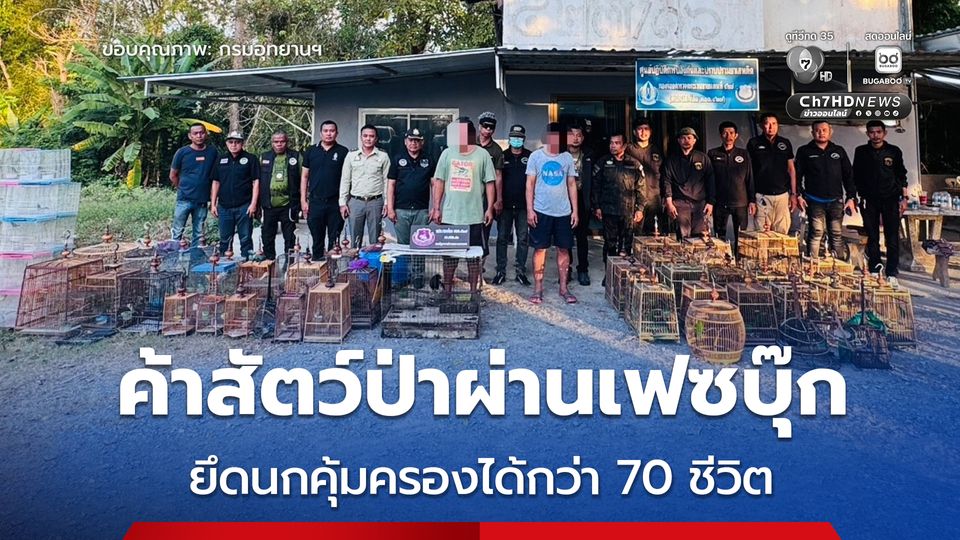 พญาเสือภาคใต้ สนธิกำลัง ตชด.427 ล่อซื้อหนุ่มวัย 41 ปี ค้าสัตว์ป่าออนไลน์ผ่านทางเฟซบุ๊ก ก่อนขยายผลตามรวบคนจัดหาให้ได้อีก 1 คน ยึดนกคุ้มครองได้กว่า 70 ชีวิต ค่าเสียหายรัฐนับหมื่น