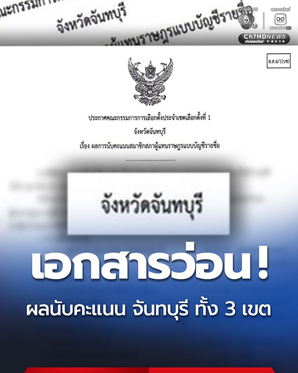 ผลการนับคะแนนเลือกตั้ง จันทบุรี เขต 1-2-3