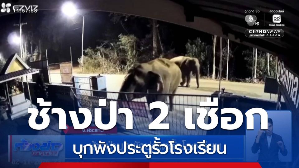 ห้องข่าวภาคเที่ยง - ไปที่สระแก้ว ช้าง 2 เชือก บุกเข้าไปในโรงเรียนกลางดึก ไม่รู้ว่าอยากเรียนหรือหิว ถึงขั้นพังประตูรั้วโรงเรียน