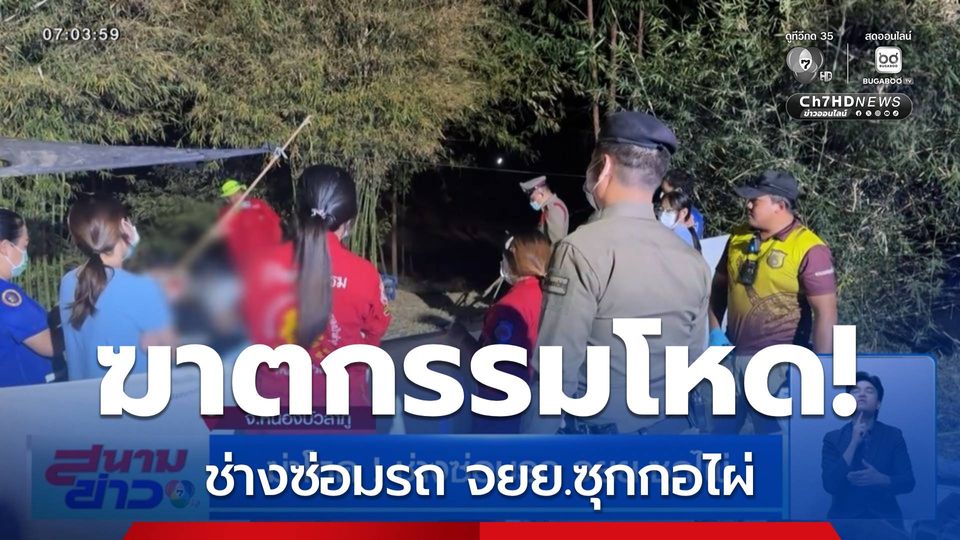 สนามข่าว 7 สี - ชายอายุ 43 ปี ถูกฆาตกรรม ใช้ไม้คัดคอกับกอไผ่ เสียชีวิตอยู่ในกระท่อมที่ตัวเองเช่าที่สร้างไว้