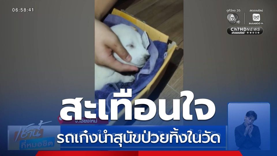 เช้านี้ที่หมอชิต - ที่จังหวัดเชียงใหม่ เหตุการณ์นี้สะเทือนใจคนรักสัตว์ มีสาวขับรถเก๋งอุ้มสุนัขป่วยมาทิ้งที่วัด พระ-เณร ดูแลอยู่ได้ไม่กี่ชั่วโมงก็จากไป