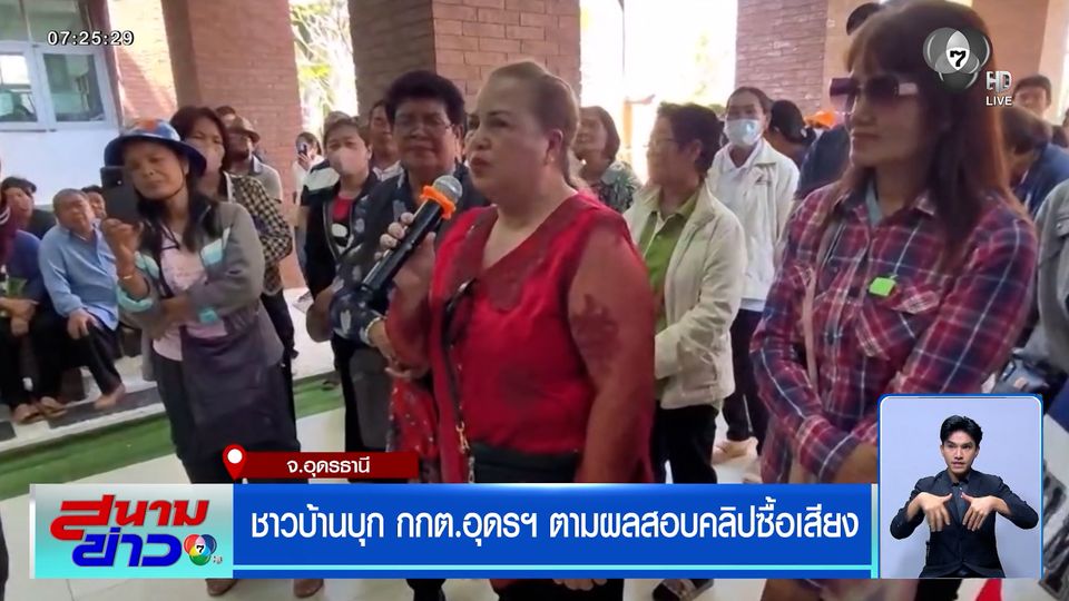 สนามข่าว 7 สี - ตามความคืบหน้า กรณีคลิปพฤติกรรมสุดฉาวของหัวคะแนน ผู้สมัคร สส. จากพรรคการเมืองหนึ่ง ประกาศเรียกชาวบ้านมายืนต่อแถวรับเงินกันฉ่ำไม่อายฟ้าอายดิน บริเวณเขตเลือกตั้งที่ 5 ซึ่งครอบคลุมอำเภอหนองหาน อำเภอพิบูลย์รักษ์ และอำเภอกู่แก้ว จังหวัดอุดรธานี