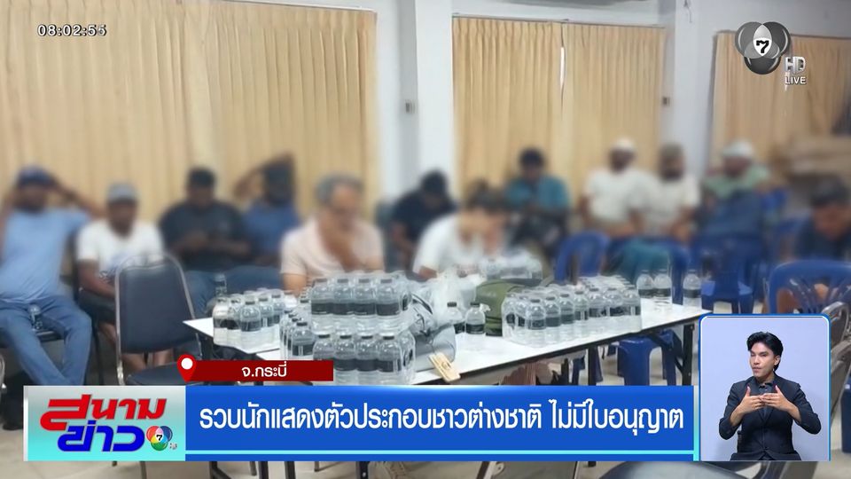 สนามข่าว 7 สี - ที่จังหวัดกระบี่ เจ้าหน้าที่รวบนักแสดงตัวประกอบต่างชาติ 46 คน จากกองถ่ายซีรี่ส์ ประเทศสหรัฐอาหรับเอมิเรตส์ ไม่มีใบอนุญาตทำงาน