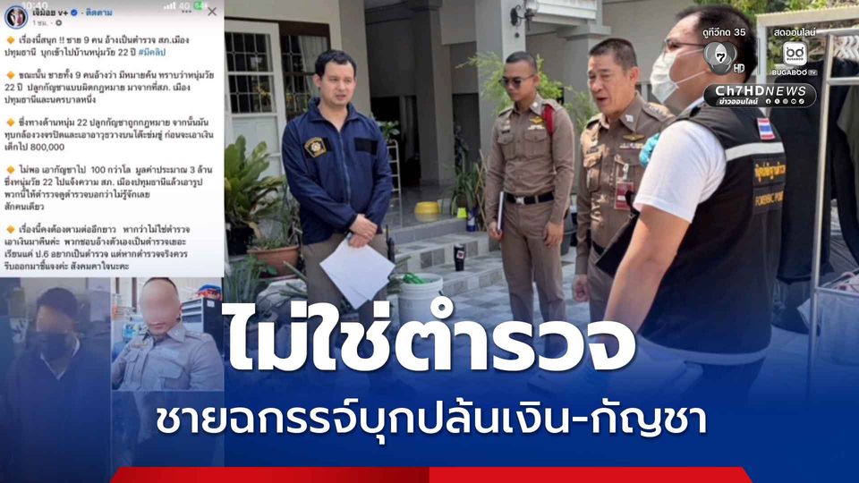 ผู้กำกับยืนยัน ไม่ใช่ตำรวจ ไม่มีตำรวจ สภ.เมืองปทุมฯ ก่อเหตุ คดีชายฉกรรจ์ 9 คน บุกค้นบ้านปล้นเงิน 8 แสน กัญชาน้ำหนักกว่า 100 กก. ล่าสุดสืบพบเบาะแสผู้ก่อเหตุ ขออนุมัติหมายจับแล้ว