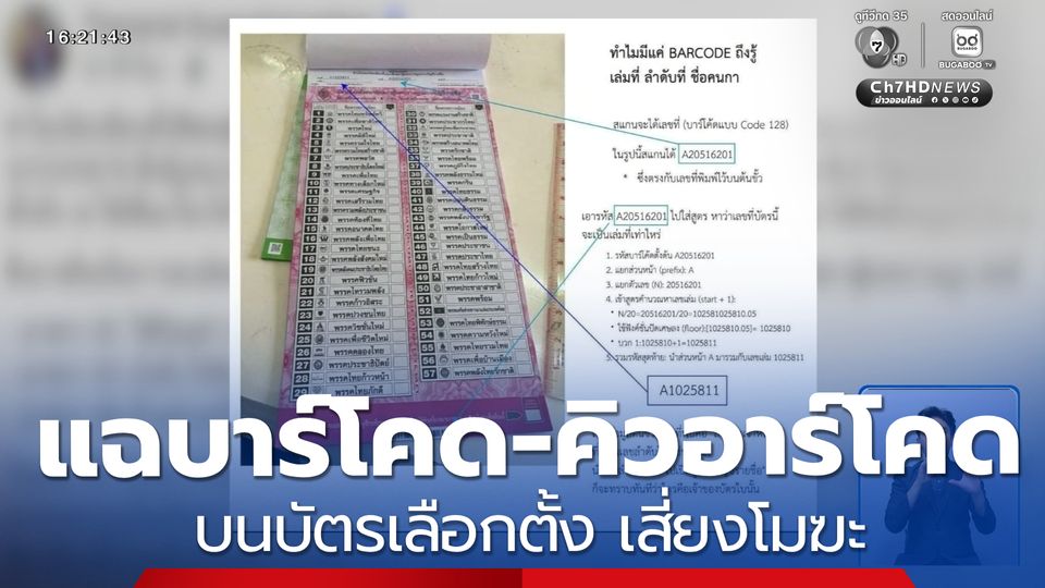 ข่าวเย็นประเด็นร้อน - ประเด็นใหญ่ที่สุดในวันนี้ คือ ประเด็นที่หลายคนตั้งข้อสังเกตเกี่ยวกับบาร์โคด และ คิวอาร์โคด ที่อยู่บนบัตรเลือกตั้งทั้ง สส.เขต และ สส.บัญชีรายชื่อ ซึ่งอาจจะทำให้รู้ได้ว่า ใครเลือกผู้สมัครคนไหน และพรรคอะไร จนหวั่นว่า การเลือกตั้งอาจจะเสี่ยงโมฆะ