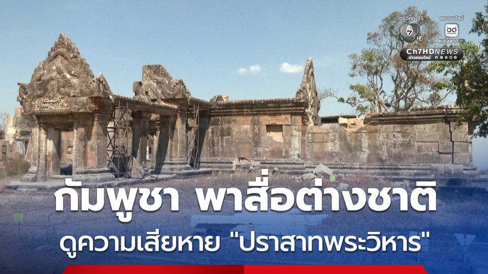 เจ้าหน้าที่กัมพูชา ยังคงเดินหน้าพาสื่อต่างชาติ ลงพื้นที่ดูความเสียหายของ “ปราสาทพระวิหาร” โดยระบุว่าเกิดจากการโจมตีของฝ่ายไทย และเรียกร้องให้ประชาคมโลกช่วยบูรณะให้กลับมามีสภาพใกล้เคียงของเดิม
