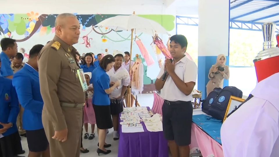โอกาสนี้ พระบาทสมเด็จพระเจ้าอยู่หัว และสมเด็จพระนางเจ้า ฯ พระบรมราชินี ทรงพระกรุณาโปรดเกล้าโปรดกระหม่อมให้ องคมนตรี เชิญสิ่งของพระราชทาน ไปมอบให้แก่นักเรียนด้วย