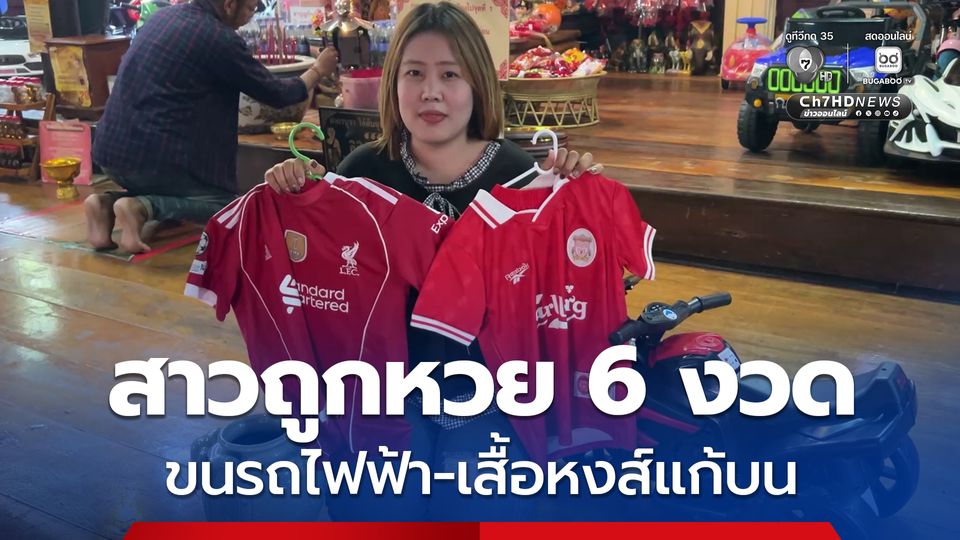 สาวดวงเฮงขนรถไฟฟ้าและเสื้อหงส์แดงทีมรักแก้บน หลังถูกหวย 6 งวด พร้อมขอไอ้ส้มฉุน วัดทรงเสวย ช่วย ทีมลิเวอร์พูล ให้ขึ้นท็อป3