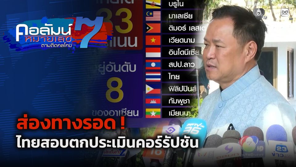 เจาะประเด็นข่าว 7HD - การจัดอันดับดัชนีภาพลักษณ์คอร์รัปชันของไทย ปี 2025 ไทยได้คะแนนต่ำสุดในรอบ 20 ปี เพียง 33 คะแนน ขณะที่นายกรัฐมนตรีแถลงยอมรับว่า สอบตกจริง พร้อมเร่งยกระดับความเชื่อมั่น ติดตามได้จากคอลัมน์หมายเลข 7 วันนี้