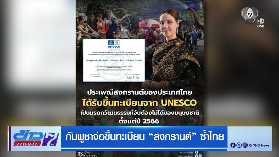 ข่าวภาคค่ำ - รัฐมนตรีว่าการกระทรวงวัฒนธรรม ยืนยัน กัมพูชาเตรียมเสนอ สงกรานต์ ขึ้นบัญชีมรดกโลกซ้ำกับไทย ไม่กระทบต่อสถานะสงกรานต์ไทย