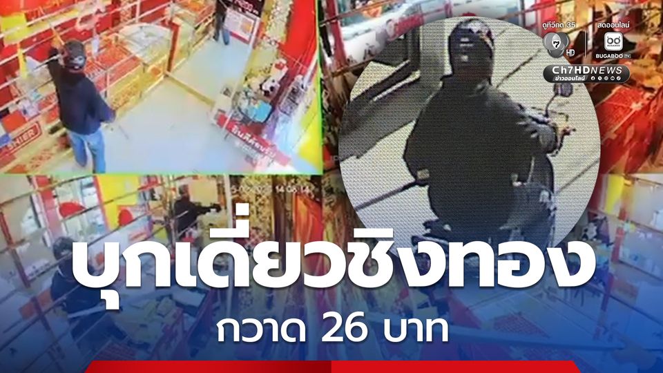 จากการตรวจสอบในที่เกิดเหตุ เบื้องต้นทราบว่าคนร้ายเป็นชาย 1 ราย ใช้รถจักรยานยนต์เป็นพาหนะ บุกเข้าไปก่อเหตุภายในร้านทอง ก่อนกวาดเอาทองคำรูปพรรณน้ำหนักรวมประมาณ 26 บาท แล้วขับขี่รถจักรยานยนต์หลบหนีออกจากพื้นที่อย่างรวดเร็ว