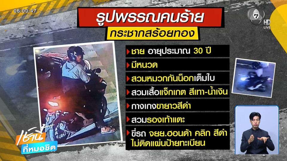เช้านี้ที่หมอชิต - ตำรวจเร่งล่า โจรขี่รถจักรยานยนต์ประกบรถตุ๊ก ๆ กระชากสร้อยทอง 10 บาท จากคอผู้โดยสาร ขณะจอดติดไฟแดงกลางแยกมหานคร หนีลอยนวล