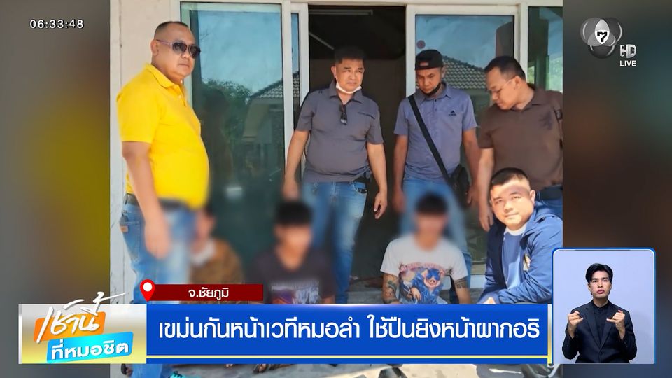 เช้านี้ที่หมอชิต - วัยรุ่นเขม่นกันหน้าเวทีหมอลำ ก่อนก่อเหตุใช้อาวุธปืนยิงใส่กลุ่มคู่อริ กระสุนไปถูกหน้าผากของหนึ่งในกลุ่มคู่อริ ได้รับบาดเจ็บอาการสาหัส