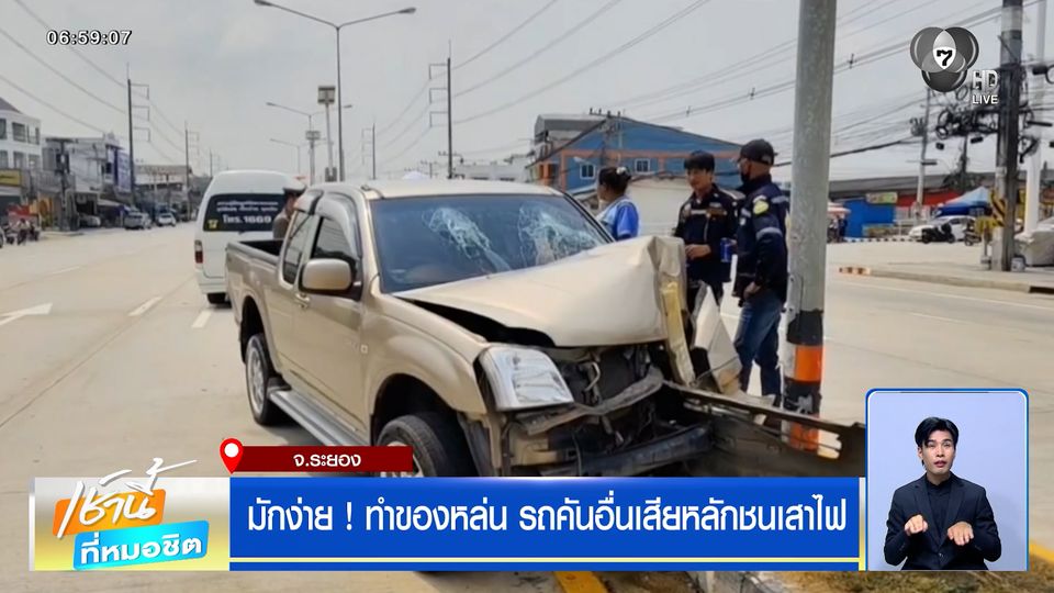 เช้านี้ที่หมอชิต - กล้องวงจรปิดจับภาพคนขับรถกระบะมักง่าย บรรทุกของไม่มีที่คลุม ทำของหล่นกลางถนน รถที่ขับมาตามหลังหักหลบพุ่งชนเสาไฟเกือบเสียชีวิตยกครัว