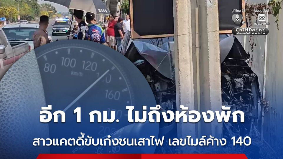 อุบัติเหตุสลด อีก 1 กิโลเมตร ไม่ถึงห้องพัก สาวแคตดี้ขับเก๋งออกจากสนามกอล์ฟหลังเลิกงาน เพื่อกลับไปอาบน้ำ รับลูกไปเที่ยวสวนสัตว์ เสียหลักชนเสาไฟฟ้าเสียชีวิต เลขไมล์ค้าง 140 กิโลเมตรต่อชั่วโมง