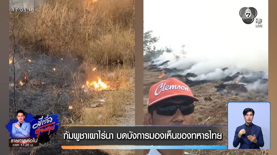 ข่าวเย็นประเด็นร้อน - กัมพูชาป่วน จุดไฟเผาไร่นาแนวหน้าประชิดชายแดนไทย นี่ ! ไม่ใช่เรื่องบังเอิญหรือการเคลียร์พื้นที่เกษตรทั่วไป แต่เป็น "ยุทธวิธีกรองข่าวสาร" เพื่อบดบังทัศนวิสัย เคลื่อนย้ายอาวุธยุทโธปกรณ์และกำลังพล