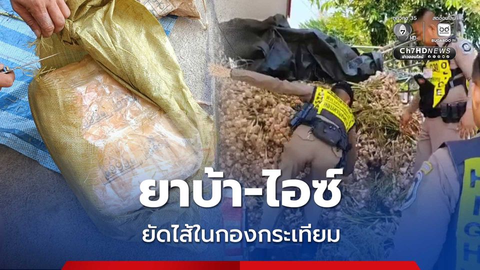 จับบิ๊กล็อต ยาบ้ากว่า 2.1 ล้านเม็ด และไอซ์ 26 กิโลกรัม ซุกใต้กองกระเทียม มูลค่ารวมกันกว่า 200 ล้านบาท อ้างเตรียมนำส่ง ตลาดค้าส่งชื่อดังย่านปทุมธานี