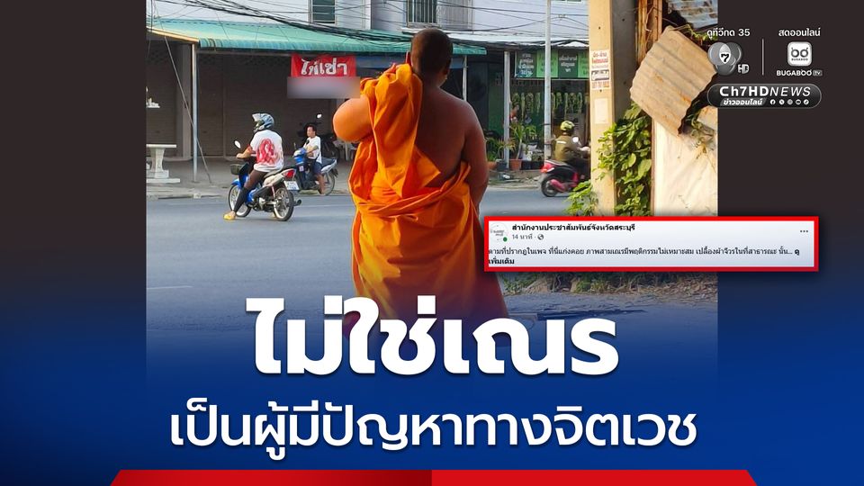 เปลื้องจีวร ตรวจสอบแล้ว น้องไม่ใช่สามเณร มีปัญหาทางจิตเวช หายออกจากบ้าน พศ.สระบุรี ประสานครอบครัวให้ดูแลใกล้ชิด อย่าทำเช่นนี้อีกเพราะอาจกระทบต่อศรัทธาทางพระพุทธศาสนา