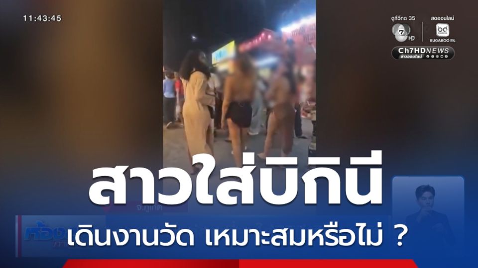 ห้องข่าวภาคเที่ยง - กลายเป็นข้อถกเถียงในโซเชียล เมื่อสาวชาวต่างชาติ 2 คน เดินสวมชุดบิกินีเที่ยวงานวัดแห่งหนึ่งในจังหวัดภูเก็ต ว่าการแต่งตัวแบบนี้เหมาะสมหรือไม่