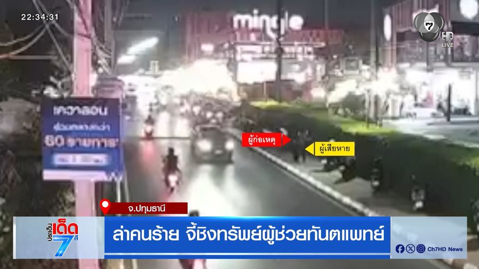 ประเด็นเด็ด 7 สี - จังหวัดปทุมธานี คนร้ายใช้มีดจี้คอชิงทรัพย์ ผู้ช่วยพันตแพทย์หญิง ที่เดินอยู่ริมถนนมีคนพลุกพล่าน อยู่ใกล้กับตลาดนัด ไม่เกรงกลัวกฎหมาย