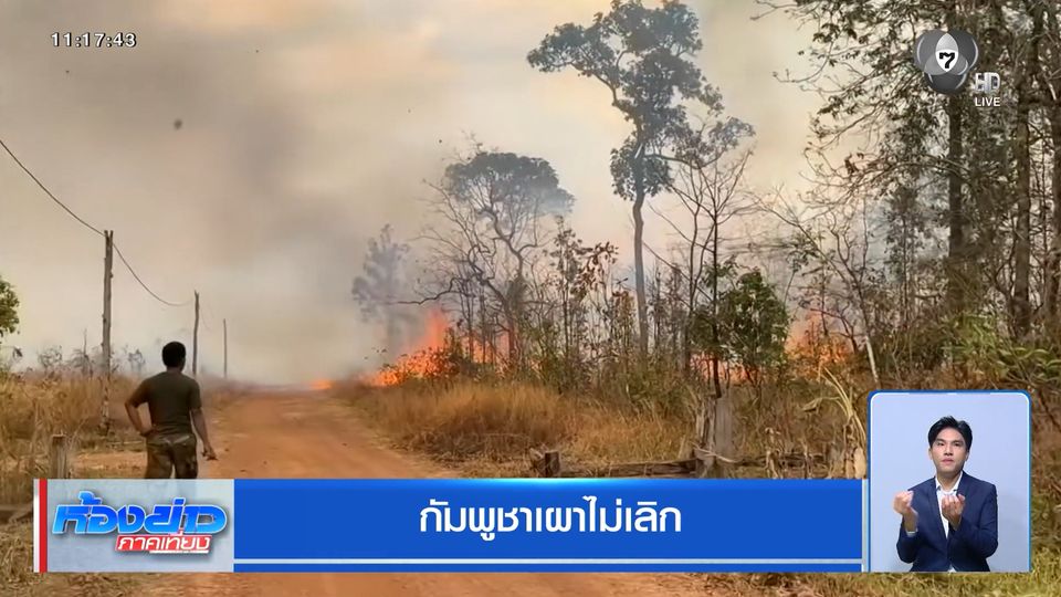 ห้องข่าวภาคเที่ยง - ทหารกัมพูชายังเผาไม่เลิก ตั้งใจจุดไฟเผาป่า เผาหญ้า หวังให้กลุ่มควันไฟลอยมาฝั่งไทย แต่ไม่เป็นไม่ตามที่หวัง เพราะลมเปลี่ยนทิศ ทำควันไฟลอยกลับเข้าหากัมพูชา เสียเอง