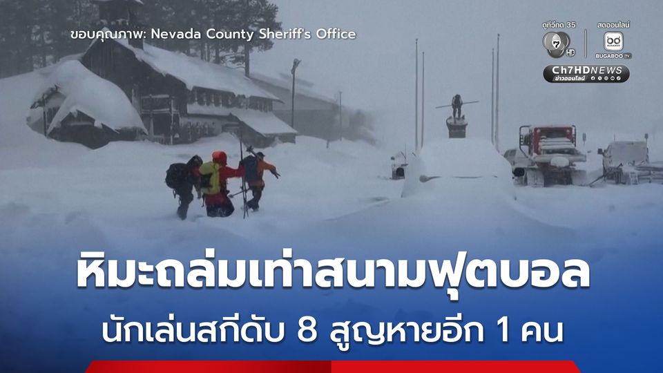 เกิดเหตุหิมะถล่มขนาดใหญ่เท่าสนามฟุตบอล บนเทือกเขาในรัฐแคลิฟอร์เนีย ประเทศสหรัฐฯ ขณะที่กลุ่มนักเล่นสกี-ผู้นำทางเดินทางกลับจากทริปเล่นสกี ส่งทำให้มีนักเล่นสกีเสียชีวิต 8 คน และสูญหายอีก 1 คน