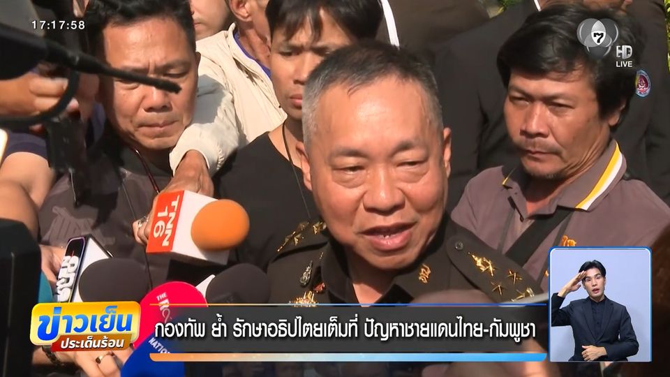 ข่าวเย็นประเด็นร้อน - กองทัพ ยืนยัน ทำหน้าที่รักษาอธิปไตยเต็มที่ เชื่อฝีมือกระทรวงการต่างประเทศ กับการรักษาอธิปไตยทางการทูตหลังฮุน มาเนต นายกรัฐมนตรีกัมพูชา เดินสายกล่าวหาไทยรุกล้ำพื้นที่กัมพูชา ซัดกลับทหารกัมพูชา ไร้วินัย และเป็นทหารผลัดใหม่ จึงเข้ามาในพื้นที่ชายแดนของไทย