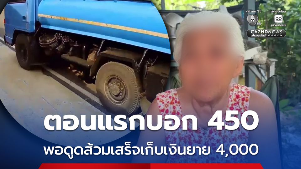 อุทาหรณ์เตือนภัย! ยายอายุ 76 ปี อยู่บ้านคนเดียว มิจฉาชีพรถดูดส้วมอ้างชื่อเทศบาลดูดราคาถูก 450 บาท แต่พอเสร็จแล้ว ข่มขู่รีดเงินยาย 4,000 บาท