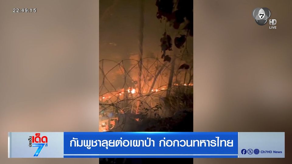 ประเด็นเด็ด 7 สี - มาดูสถานการณ์แนวชายกันบ้าง ทหารกัมพูชายังไม่หยุดเผาป่าก่อกวนทหารไทย แม้จะเจอลมเปลี่ยนทิศอยู่หลายครั้ง จนไฟลามกลับเข้าไปในเขตชุมชนตัวเอง