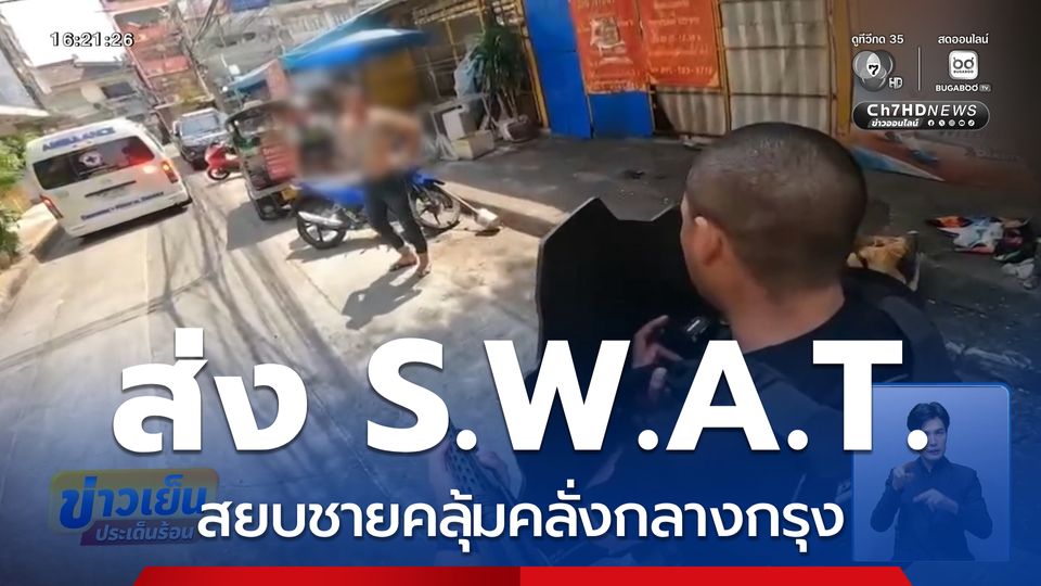 ข่าวเย็นประเด็นร้อน - พบคนอารมณ์ร้อน มีอาการคลุ้มคลั่ง ชาวบ้านรีบแจ้งตำรวจ สน.พลับพลาไชย 1 เลยส่งหน่วย S.W.A.T มาระงับเหตุ ดีที่ไม่บานปลายต้องใช้กำลัง
