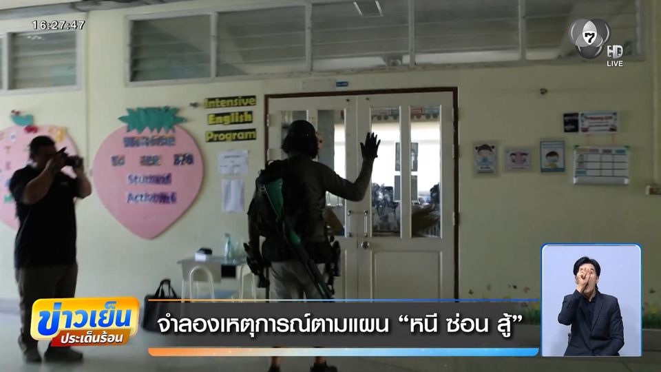 ข่าวเย็นประเด็นร้อน - วันนี้มีหลายสถานที่พร้อมใจกันซักซ้อมแผนเผชิญเหตุ "หนี ซ่อน สู้" เพื่อให้ทุกคนได้เตรียมพร้อมรับมือกับเหตุการณ์ไม่คาดคิด จะได้ทำตัวถูกว่าถ้าเจอแบบนี้ควรทำอย่างไร