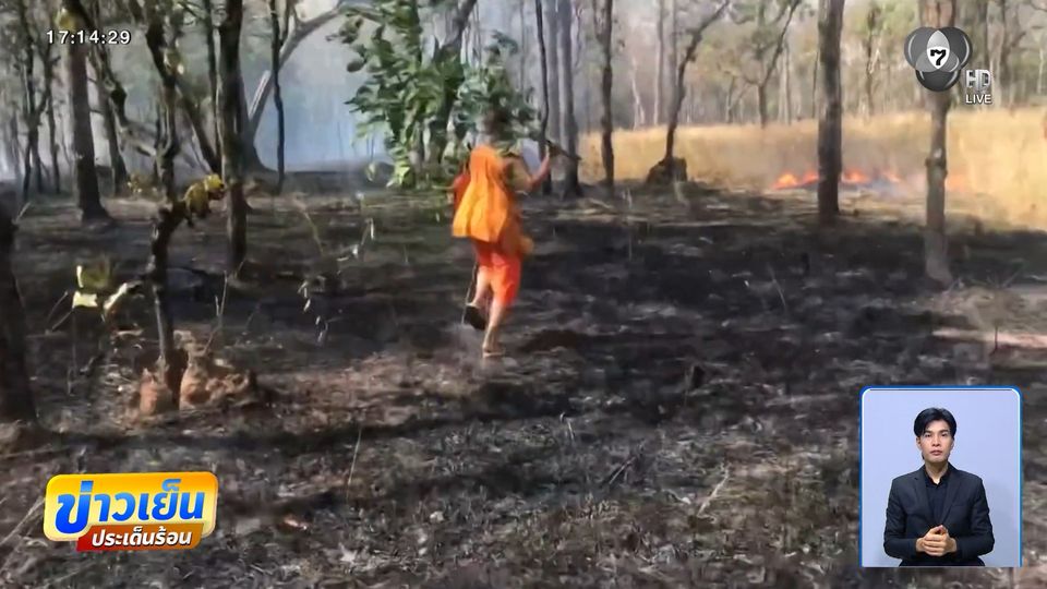 ข่าวเย็นประเด็นร้อน - ไฟป่ากัมพูชาลุกลาม ทำชาวบ้านเดือดร้อนหลายหลังคาเรือน ไม่เว้นแม้แต่พระสงฆ์และเณร ต้องมาช่วยดับไฟ