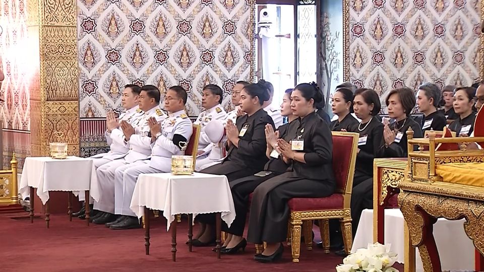 วันนี้ ที่พระที่นั่งดุสิตมหาปราสาท ในพระบรมมหาราชวัง เวลา 10.00 น. สายสกุลคชเสนี มูลนิธิสงเคราะห์ครอบครัวทหารผ่านศึก ในพระราชูปถัมภ์ สมเด็จพระศรีนครินทราบรมราชชนนี, บริษัท เอเพ็กซ์ฟู้ดแอนด์ฟรุต จำกัด และบริษัท จินหมิง กรุ๊ป (ประเทศไทย) จำกัด ได้รับพระราชทานพระบรมราชานุญาต ให้เป็นเจ้าภาพในการบำเพ็ญกุศลถวายพระบรมศพ สมเด็จพระนางเจ้าสิริกิติ์ พระบรมราชินีนาถ พระบรมราชชนนีพันปีหลวง ในพิธีถวายภัตตาหารเพลแด่พระสงฆ์ 10 รูป จากวัดพิชยญาติการาม กรุงเทพมหานคร และวัดตากฟ้า จังหวัดนครสวรรค์ ที่สวดพระพุทธมนต์ สวดบทถวายพรพระ และสดับปกรณ์