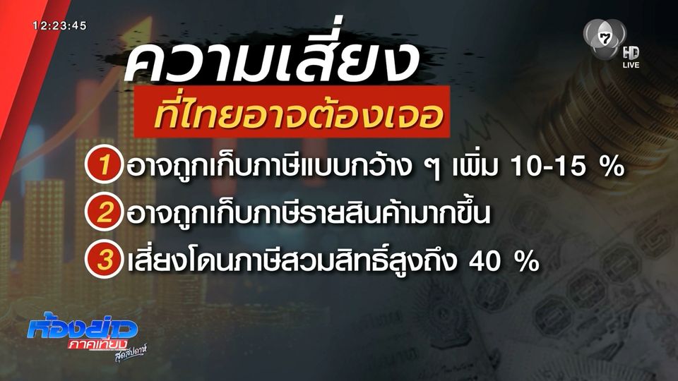 โดยความเสี่ยงที่ไทยอาจต้องเจอ คือ 1.อาจถูกเก็บภาษีแบบกว้าง ๆ เพิ่ม 10-15% 2.อาจถูกเก็บภาษีรายสินค้ามากขึ้น และ 3.เสี่ยงโดนภาษีสวมสิทธิ์สูงถึง 40% ดังนั้นต่อให้ยกเลิกภาษีบางส่วน การส่งออกของไทยก็ยังไม่สดใสอยู่ดี