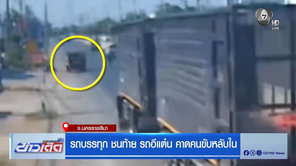กล้องวงจรปิดริมถนนสุรนารายณ์ อำเภอโนนไทย จังหวัดนครราชสีมา บันทึกภาพนาทีรถบรรทุกขับอยู่เลนซ้าย ก่อนเสียหลักไปชนท้ายรถอีแต๋นที่จอดอยู่ข้างทางอย่างแรง ซึ่งจังหวะนั้น คนขับรถอีแต๋นลงไปซื้อของพอดี ทำให้ไม่มีผู้ได้รับบาดเจ็บ เหตุการณ์เกิดเวลา 15.39 น. ของวันนี้