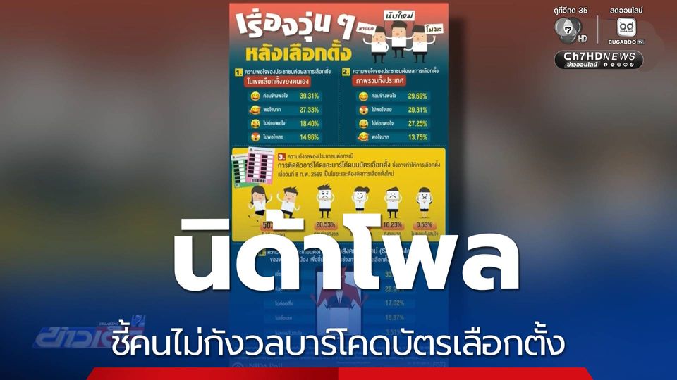 โดยมีประชาชน 50.31% ไม่กังวลเลย ต่อกรณีการติดคิวอาร์โคด และบาร์โคดบนบัตรเลือกตั้ง ซึ่งอาจทำให้การเลือกตั้งเป็นโมฆะ