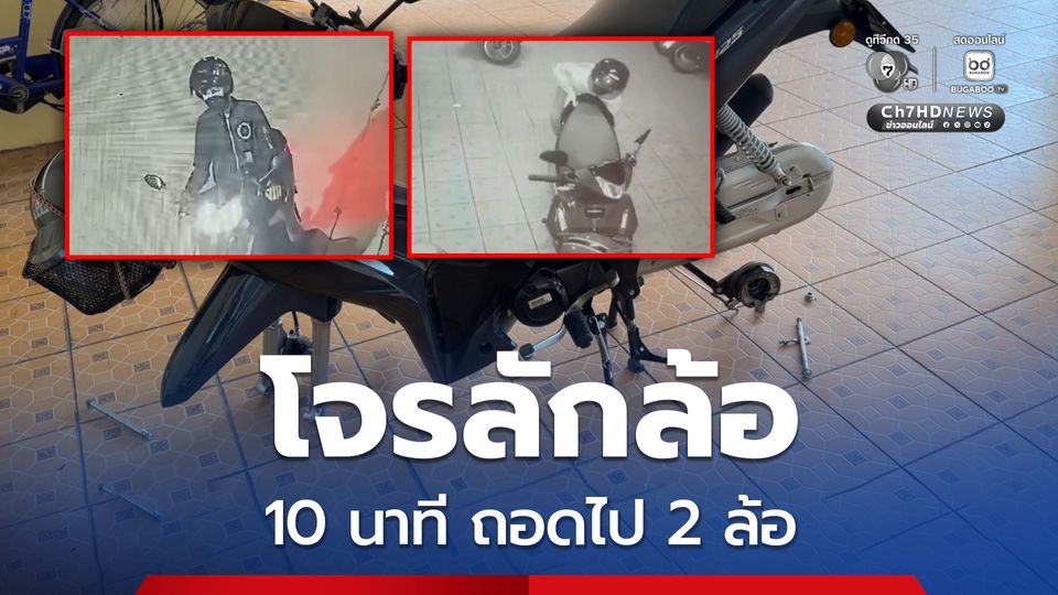 หมดกันยานพาหนะทำมาหากิน หนุ่มขับรถ จยย. รับจ้างผ่านแอปพลิเคชัน สุดเซ็ง จะออกไปรับส่งลูกค้า เหลือแต่รถ ไม่มีล้อ เปิดกล้องวงจรปิดดูถูกโจรเข้ามาขโมยถอดล้อ ใช้เวลา 10 นาที ถอดไป 2 ล้อ