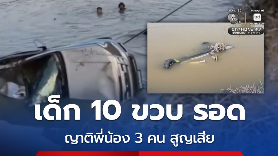 อุบัติเหตุสลด รถกระบะเสียหลักตกคลอง ญาติพี่น้องเสียชีวิต 3 คน พลเมืองดีเห็นเหตุการณ์กระโดดน้ำช่วยรอด 1 คน เป็นเด็กหญิง 10 ขวบ