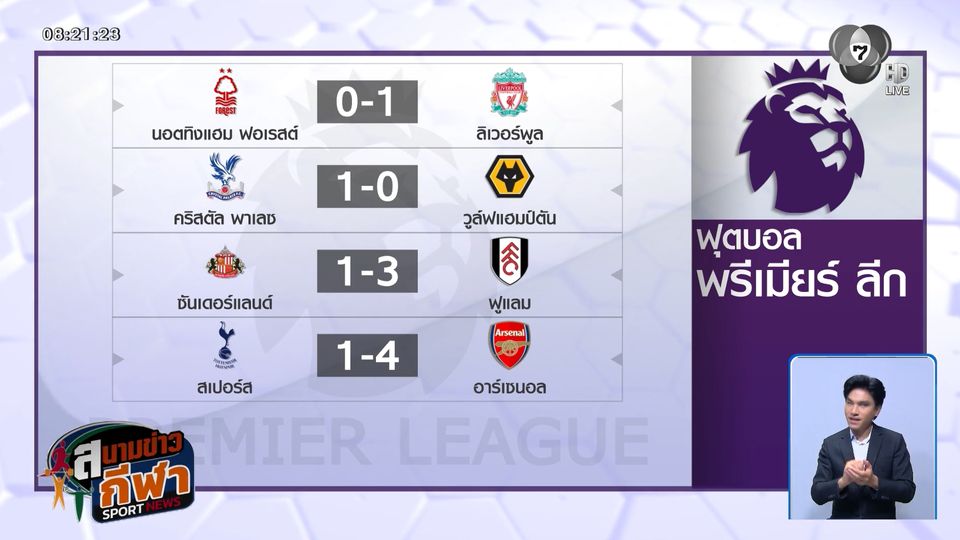 สนามข่าวกีฬา - ผลฟุตบอลพรีเมียร์ลีก อังกฤษ ลิเวอร์พูล กับ อาร์เซน่อล เอาชนะได้ทั้งคู่